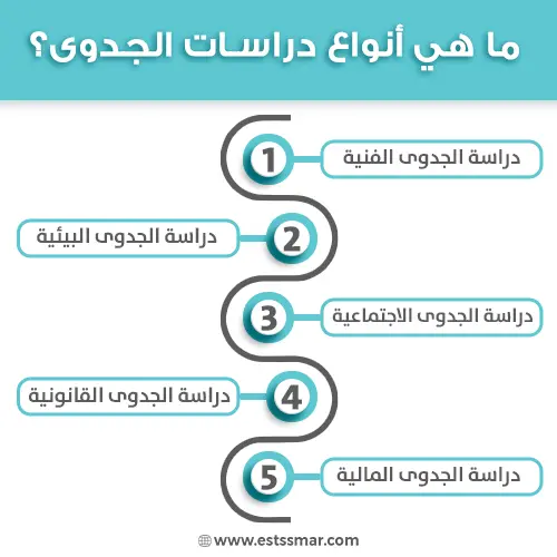 هناك مجموعة من أنواع دراسات الجدوى التي تفيد المشروعات وتعمل على تحقيق أهدافها، وتعد دراسة الجدوى الاقتصادية هي حجر الأساس لعمل الاستثمارات الناجحة وهي خطوة البدء في مساعدة المشروع للحصول على التمويلات الحكومية أو التمويلات من الجهات الكبرى وعمل العقود الاستثمارية مع الشركات الأخرى، وتتمثل أنواع دراسة الجدوى في التالي: